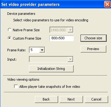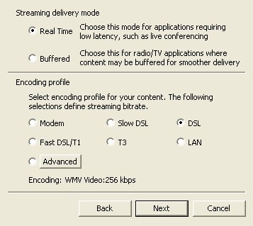 Faire File/New live broadcast, et remplir les différents écrans comme indiqué.